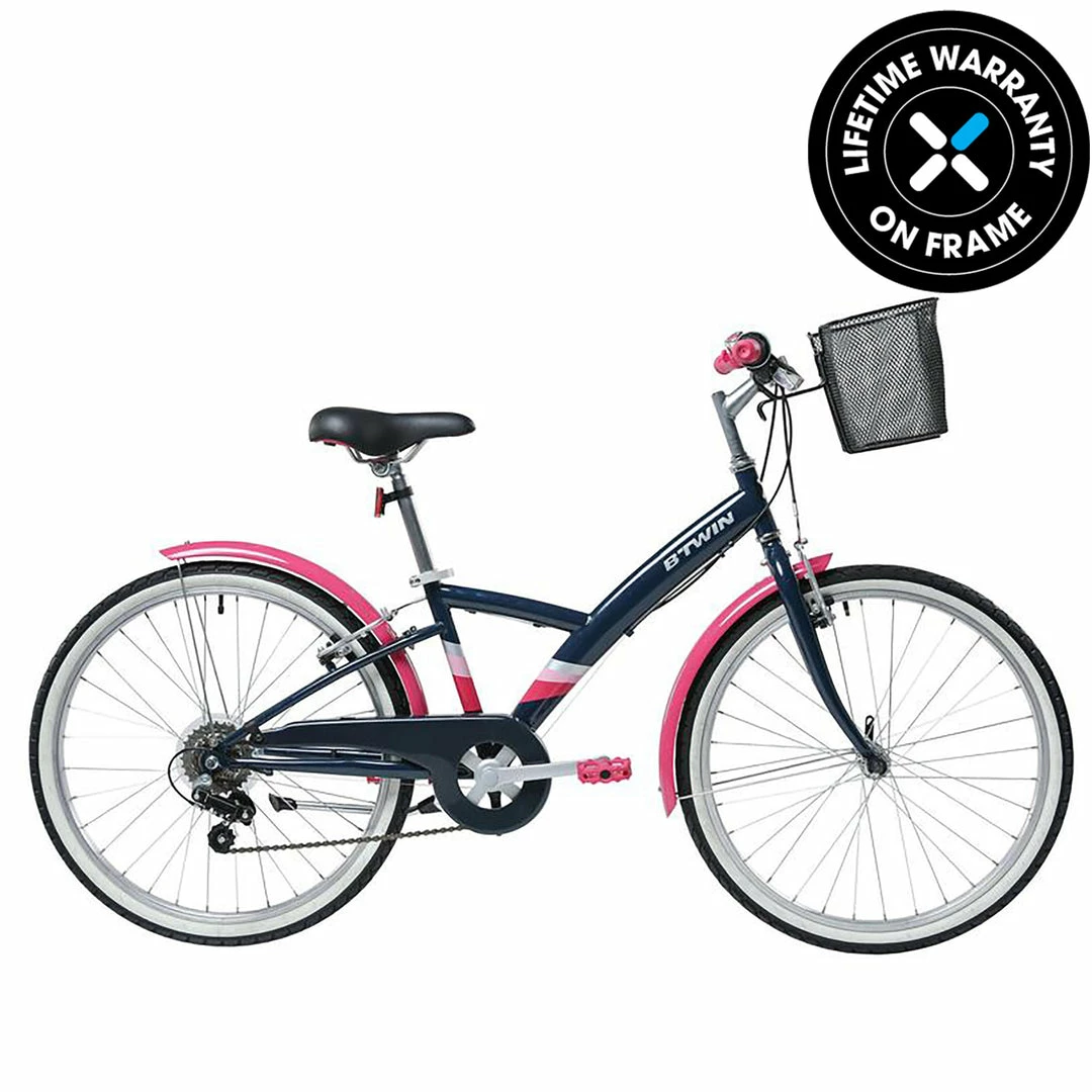 A 24″, 6-speed hybrid bike with a wide, padded, comfortable saddle. Equipped with a basket, stand.