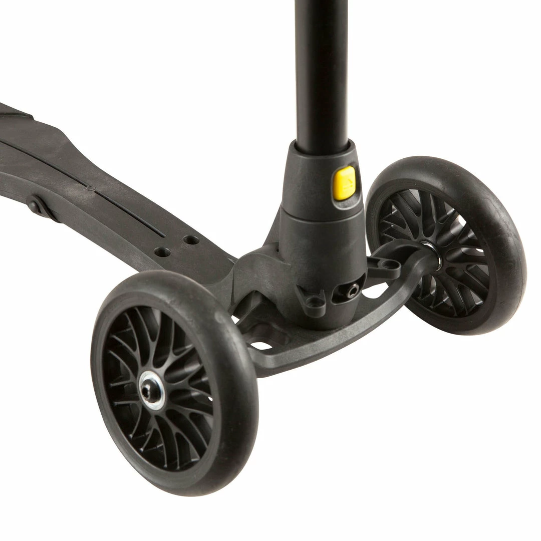 Because of its 2 front wheels and its unique, patented steering system. This combination was designed in conjunction with a physiotherapist and lets the deck tilt to a precise angle that’s safe for children (which means they don’t lose their balance when pushing forward or turning).