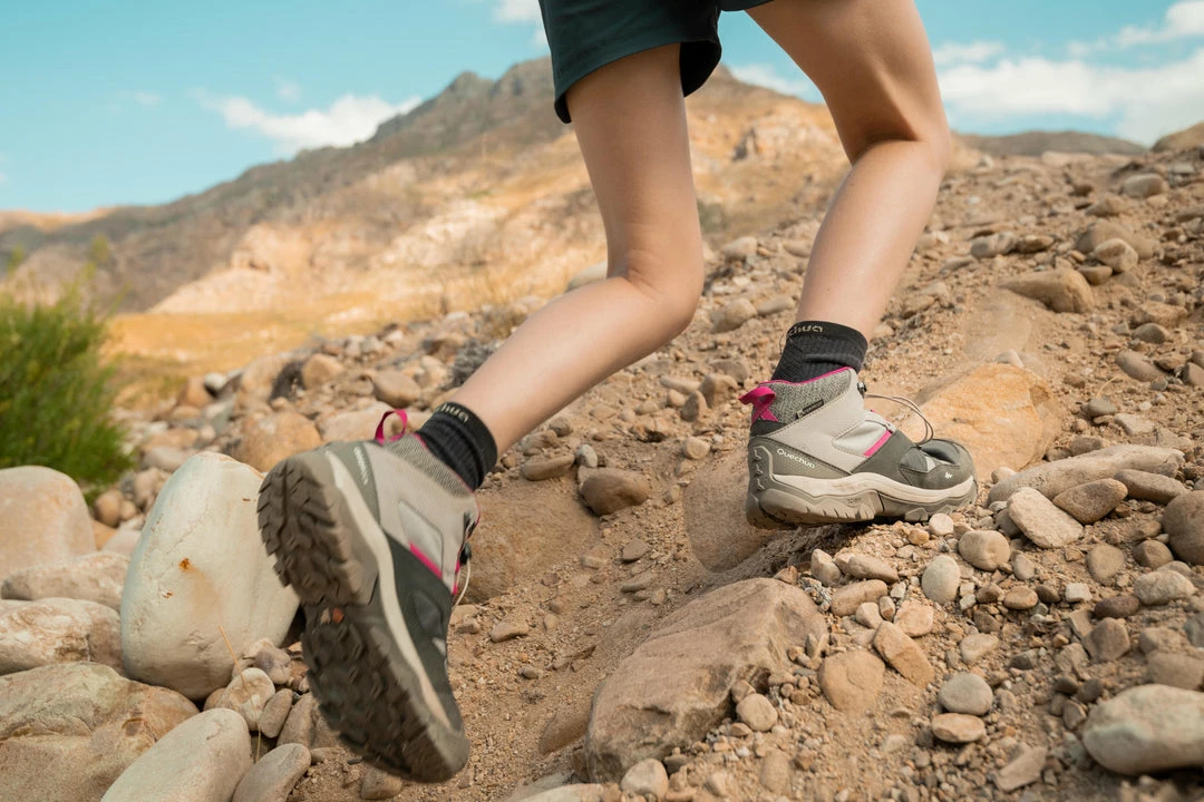 For hiking, do not hesitate to choose 1 size above your usual size to ensure optimal comfort when going downhill and prevent your toes from hitting the front of the shoe. Advice: keep your nails short and, before making your descent, check that your lacing prevents your foot from sliding toward the front of the shoe.