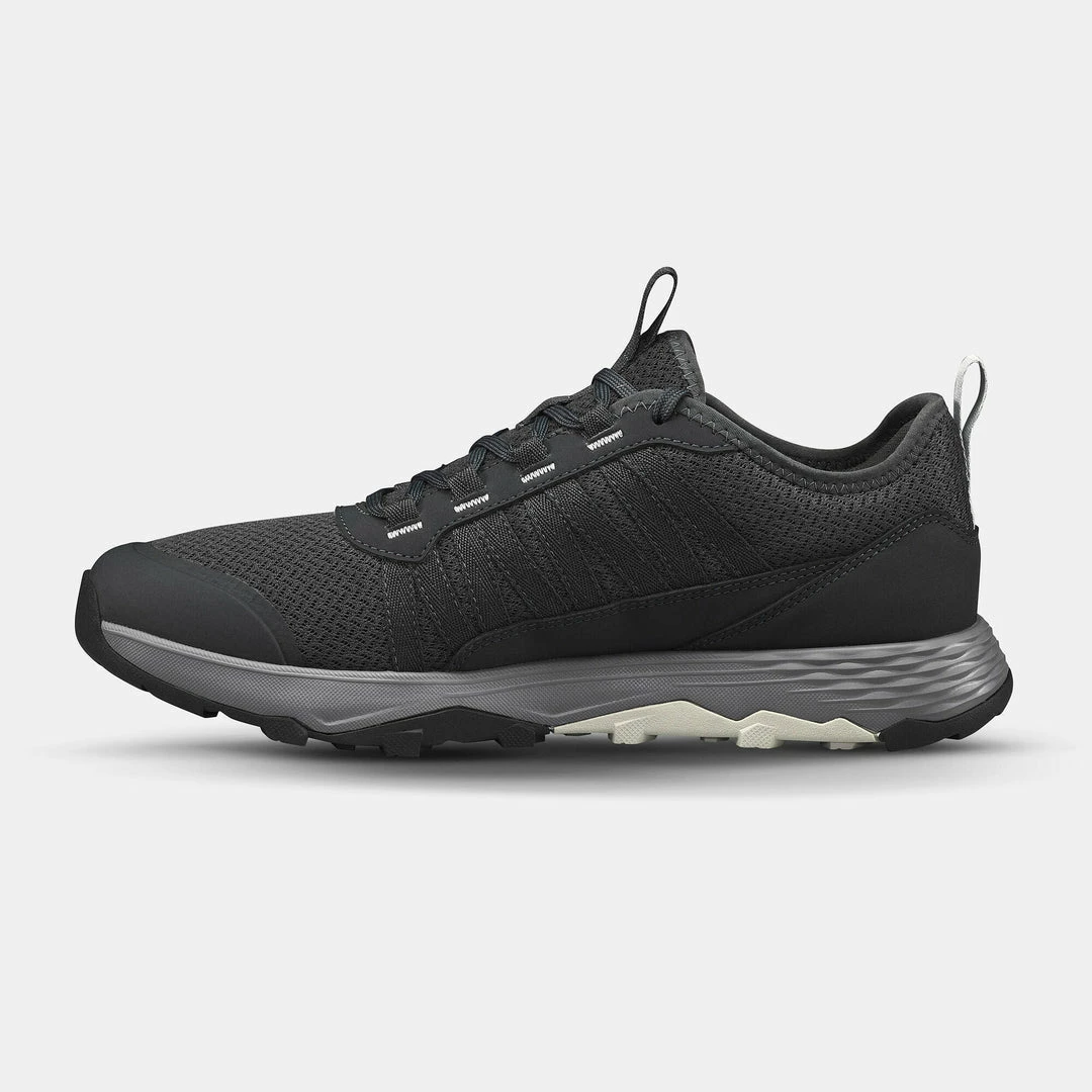 Main material of the upper, mesh, laces, and lace loops in 40% recycled polyester. Lining 100% recycled polyester for blue/yellow and brown colors. By recycling plastic bottles or used textiles to produce our polyester, we reduce the use of petroleum-based resources while preserving the qualities and performance of the material for your hikes.