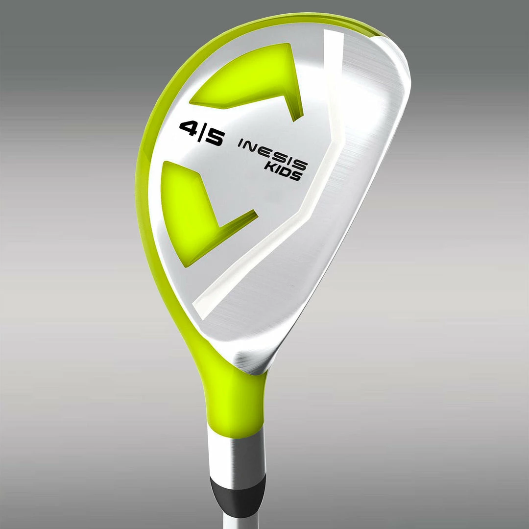 - Inesis Right-Handed 3-Piece Golf Set, Kids’ (5-7 Years Old): Contains, 1 hybrid club; 1 9-iron/PW club, 1 putter , 1 shoulder-strap bag with large pocket (8/7-iron available, sold separately).