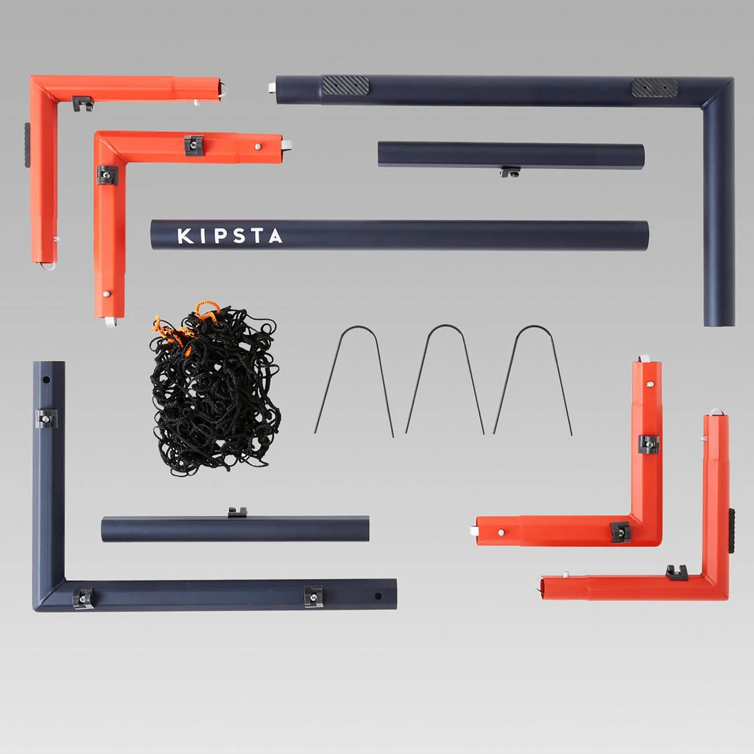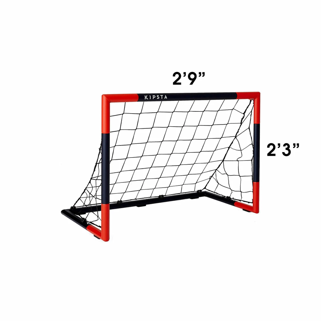 - Product: Includes the Soccer Goal (Size small 3 x 2 feet) , 3 stakes for aditional stability, the Net, Net fasteners, and 6 pads for additional grip on turf, concrete, gym floors, and grass.