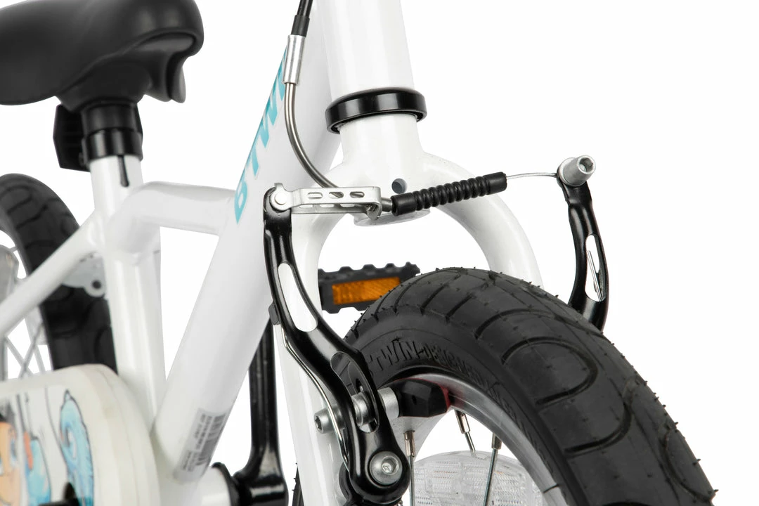 The innovative Stop Easy brakes, specially designed for kids’ small hands, require 30% less braking effort than traditional levers. V-brake at the front and coaster brake at the rear for effective braking.