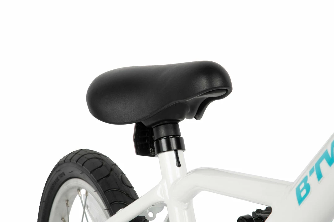 Exclusive new B’Twin steel frame: lower in the middle to make it easy to get on and off. Kids won’t get stuck on their bike when playing as it’s easy to climb on / off.