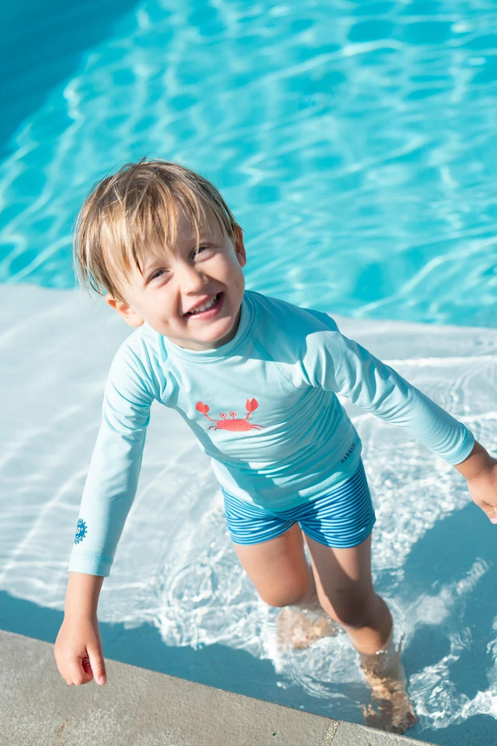 Our design teams have developed this long-sleeved UV-protection T-Shirt to protect babies from the sun during activities in the water and by the sea.