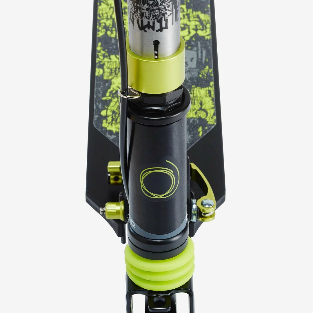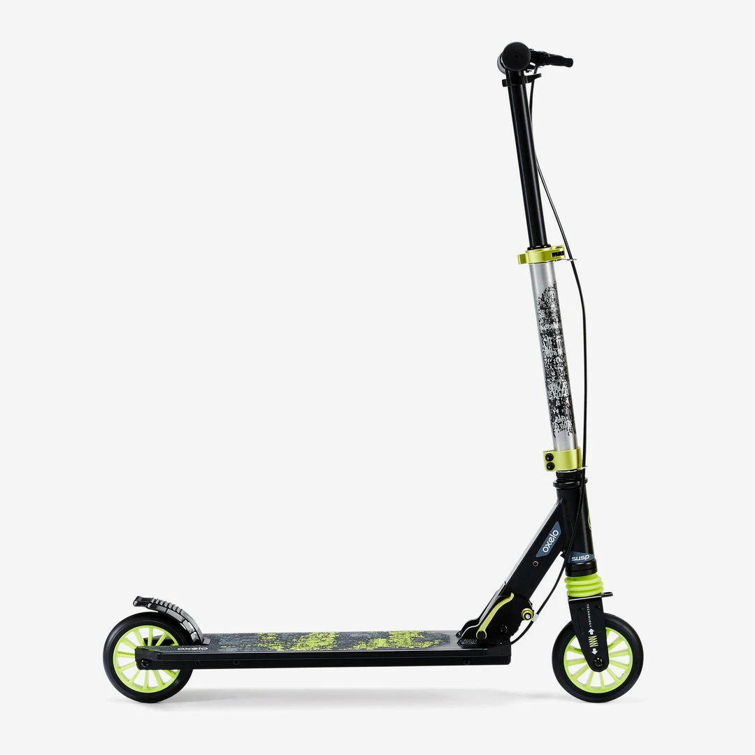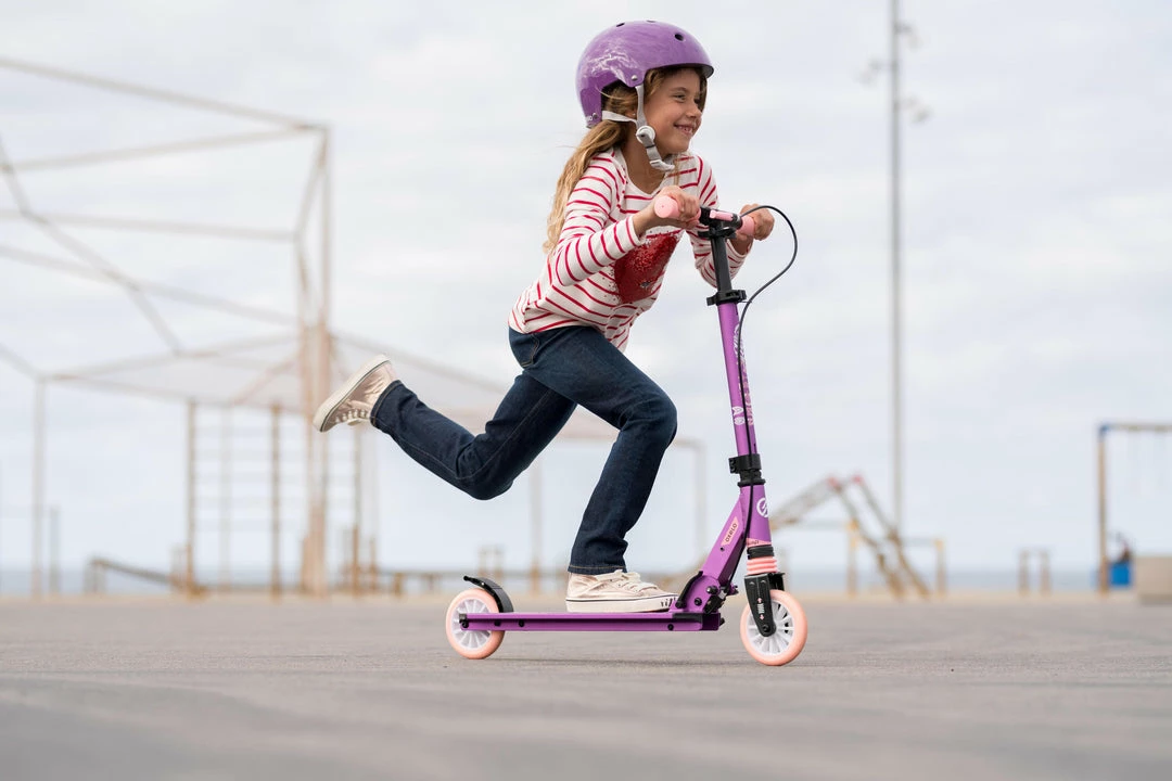 The Kids’ Scooter with Handlebar Brake and Suspension Mid5 by Decathlon might be the perfect ride for your child. It has two 125mm tires made from a mix of polyurethane and rubber. It also has rear-wheel brakes that will allow you to stop quickly. This has brake levers located on the handlebars so you can handle the scooter at your own speed. The front suspension is designed to absorb shock so you can enjoy a smooth ride even on slightly rougher terrain. If you want excellent portability, you have it with the quick-fold system that you can fold up or down.