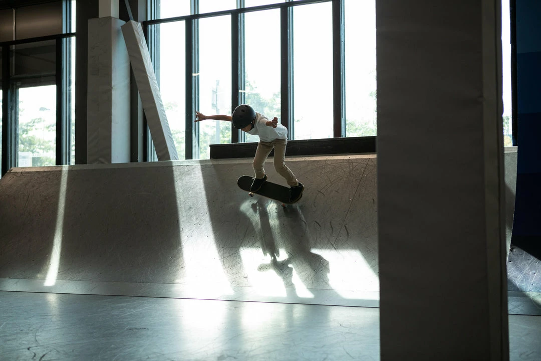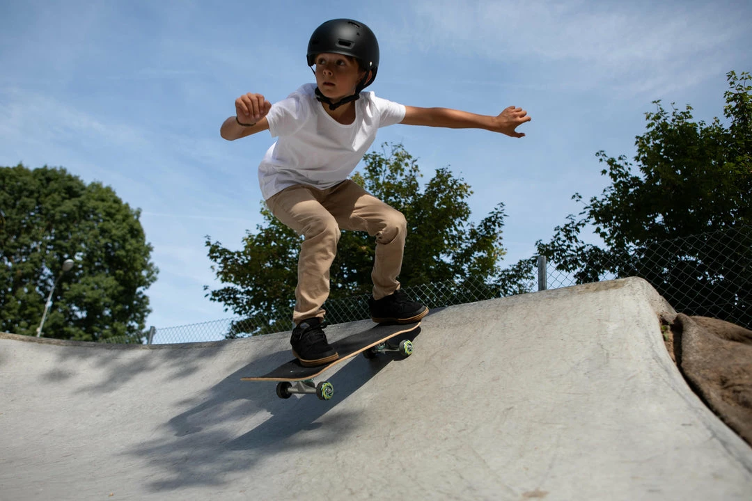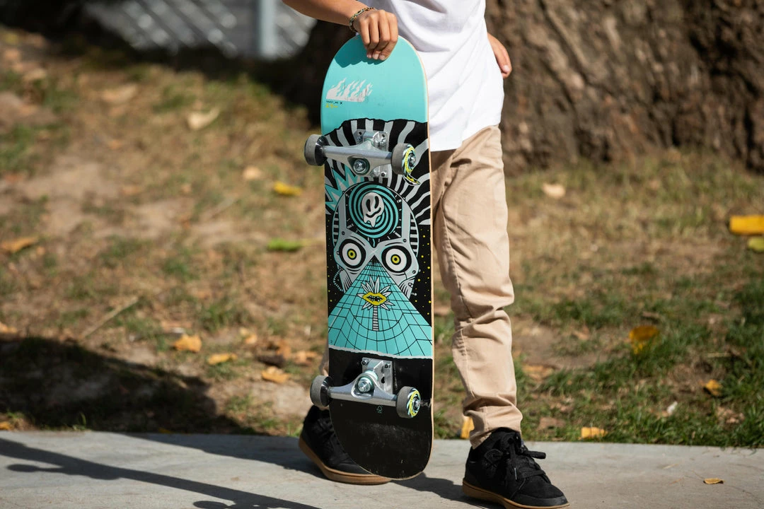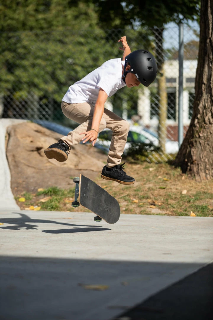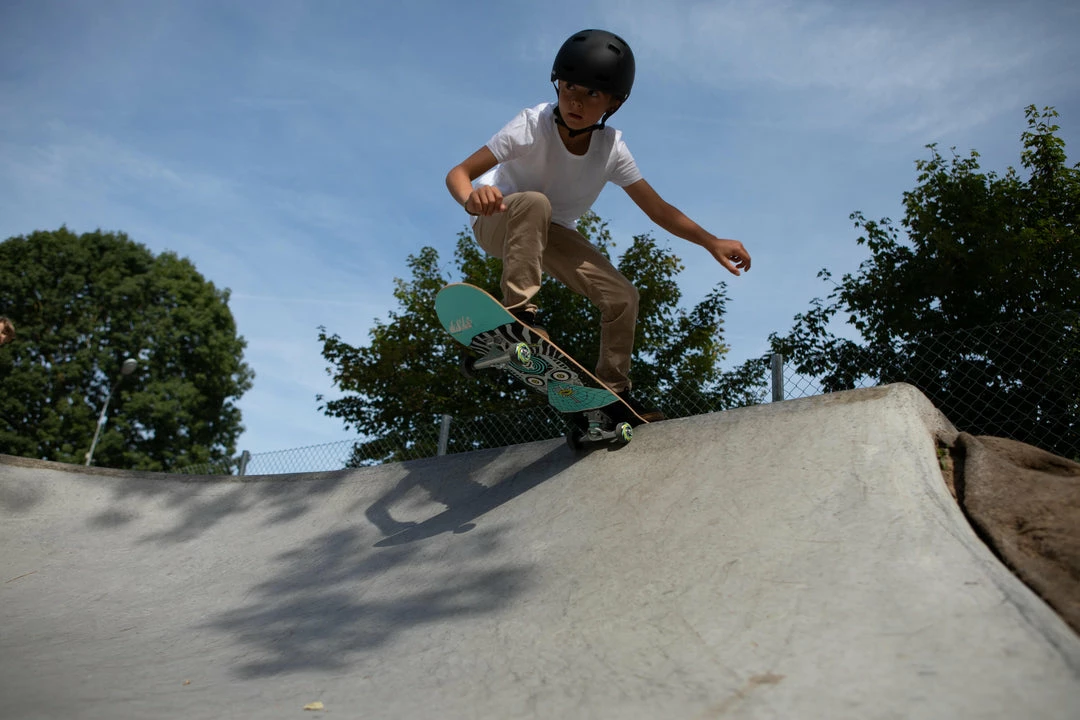 We designed this model for kids aged 8 to 12 that are starting to learn the basics of skateboarding on a board adapted to their size.