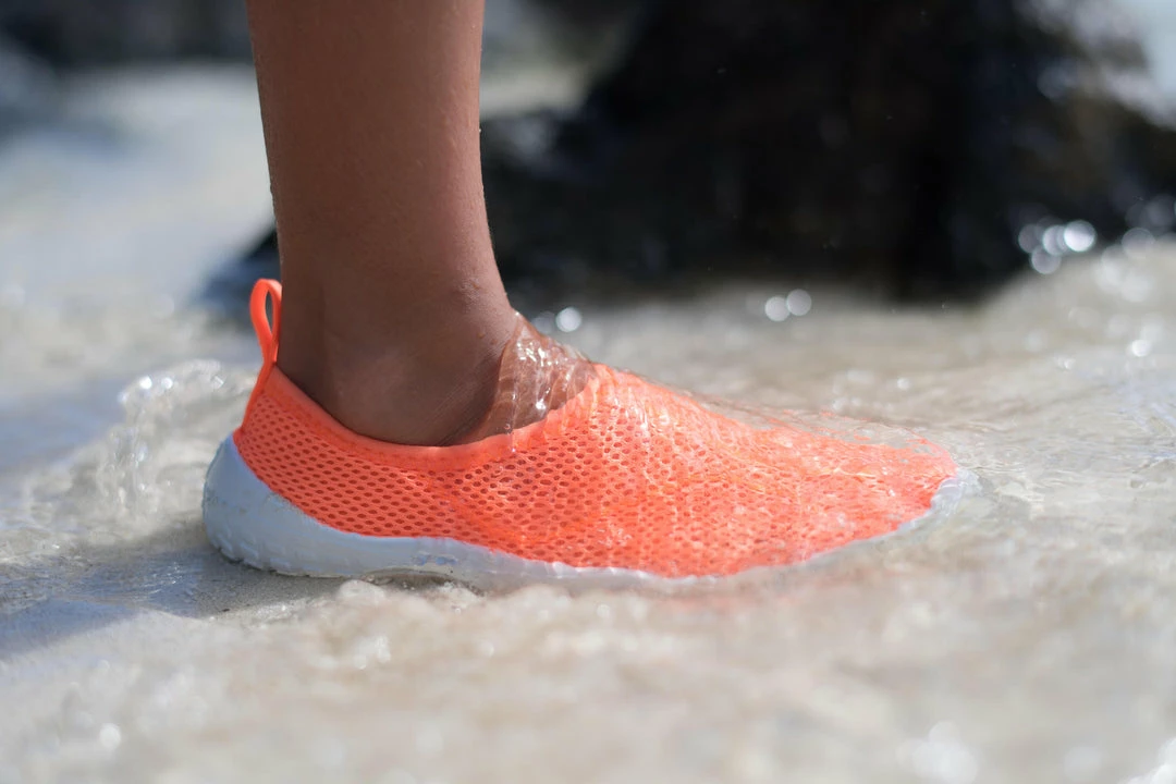 Aquashoes designed to let children walk comfortably across pebbles and rocks at the waterβs edge so that they can discover the coastal seabed.