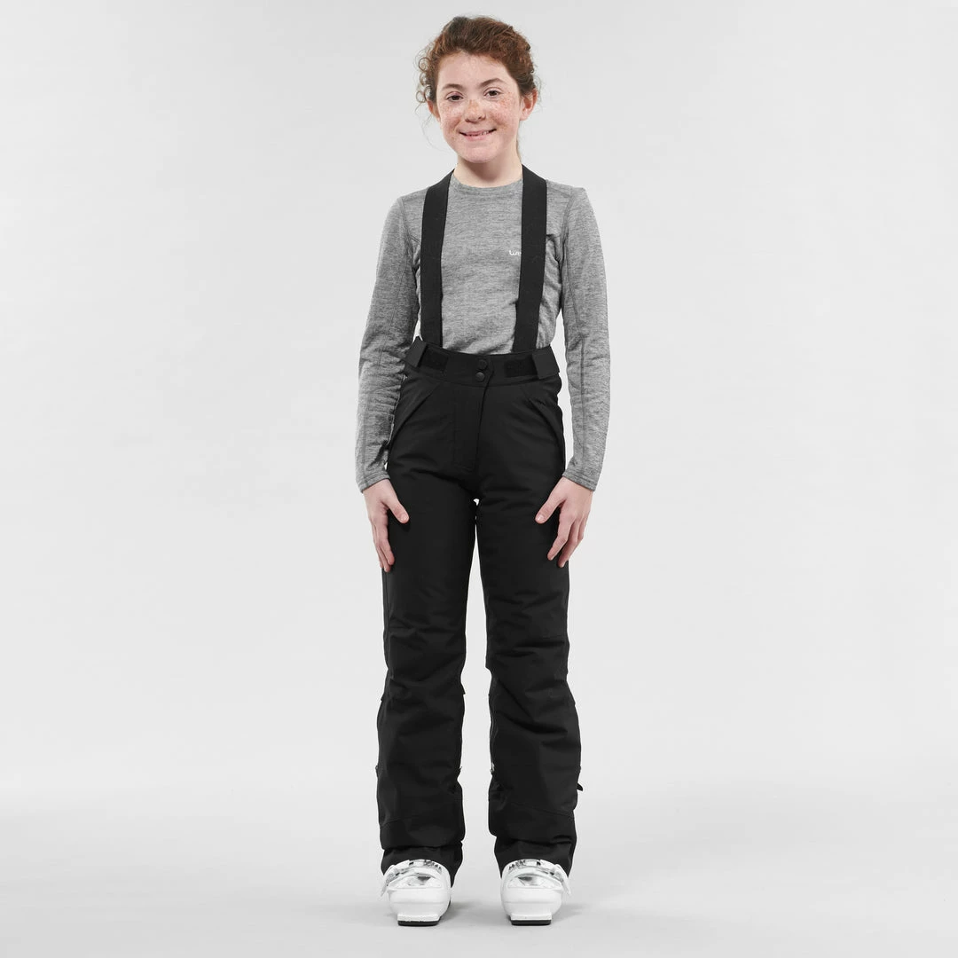 To keep their legs warm and dry, you need 2 layers: 1 skiing base layer to wick away perspiration and 1 pair of ski pants to protect from the weather and provide warmth.